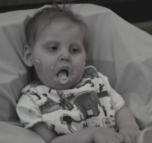 The urinary tract infections defined our first year. As I sat in the E.R. telling the doc that I would like to cath her instead of the nurse because I “know where the goods are” I felt it ironic that we were here four hours before her birthday. Ah, what we learn in a year. I told Samantha that as we say goodbye to one year tonight, we are also saying goodbye to these nasty UTI’s….let’s hope her bladder listens.