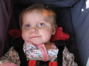 So Mama drug me out yesterday to do this thing called ‘vote’. I didn’t think it was too exciting. I did get a sticker though!