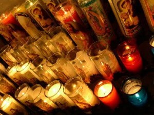 Inside are photos, prayers, crutches and pictures of those healed by the Chimayo earth. Candles lit the parameter. I picked up a candle for Samantha and sat down to say a prayer.