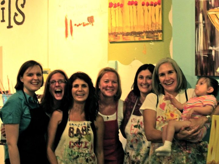 These pictures were taken during a Canvas and Cocktails evening fundraiser for our little friend Cici (the sweet little girl in my arms). It was wonderful to fit right in again….being part of the Fruit of the Loom….I think I’m the banana.