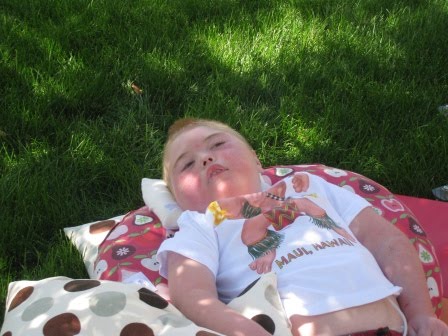 Jacob has dinner with his family every night, he plays in the pool in the summer. Jacob loves reading, cuddling, music, and yes his weekly massage! I am jealous every Wednesday morning when Jacob gets his full body massage…Jacob just sighs out of pure content.