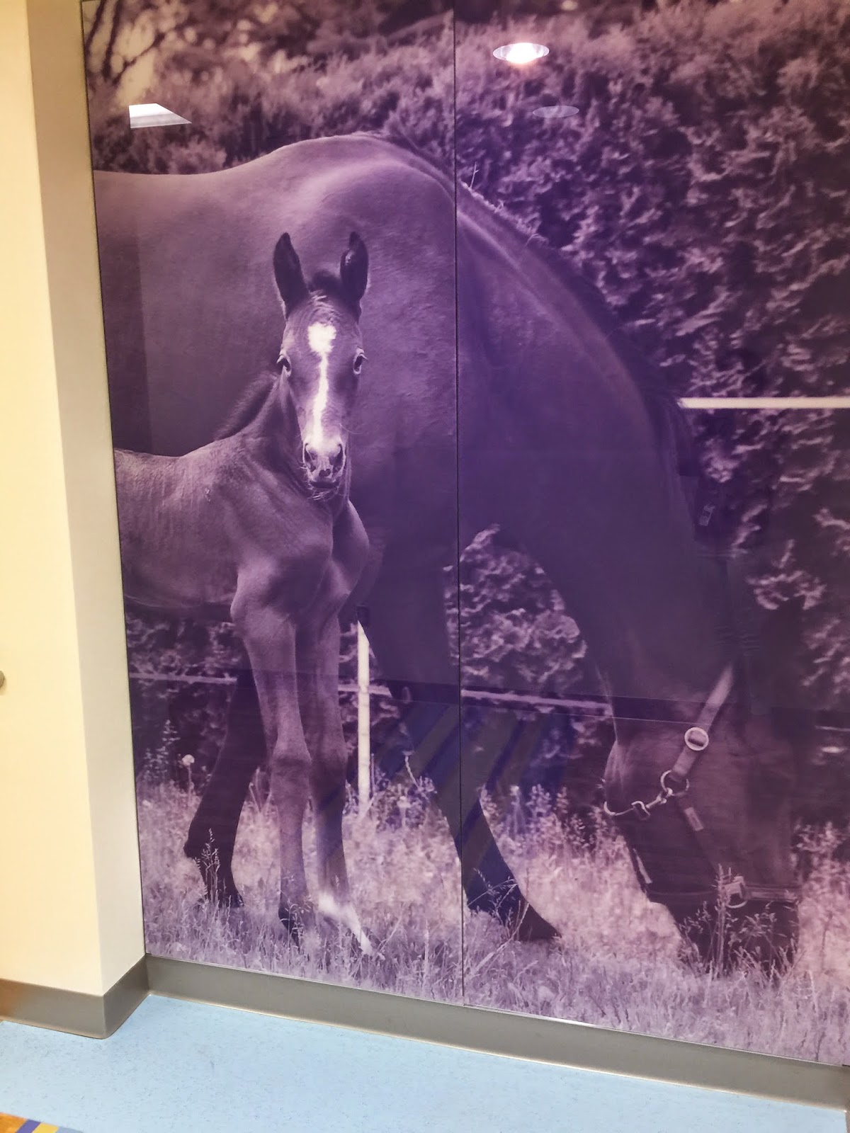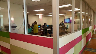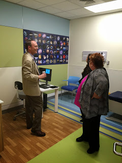 The clinic is bright, beautiful and BIG. The rooms are big, the halls are big, all to accommodate kiddos in wheelchairs who have a lot of stuff.