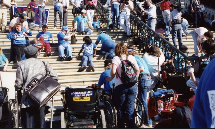 This was the Capital Crawl on March 13, 1990. They could not walk, so they climbed up the Capital stairs.