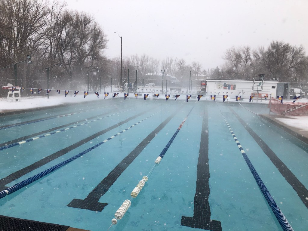 By the third lap, I have warmed up. My feet are no longer yelling at me. My arms go from cool to warm with every stroke. Snowflakes gather on my swim cap. I cannot see the other side of the pool through the foggy steam.