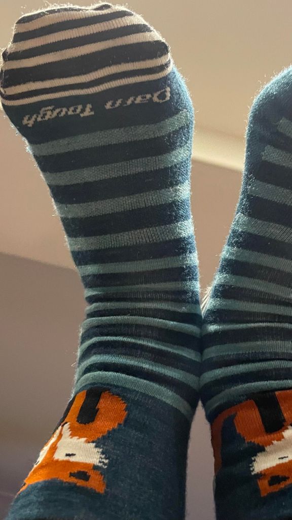 Not only are these awesome socks but they are darn tough…. yes I know, I am a sucker for branding but putting these darn tough socks on my feet, looking at my tootsies and deciding I was also going to be darn tough today and well, that was a delight too.