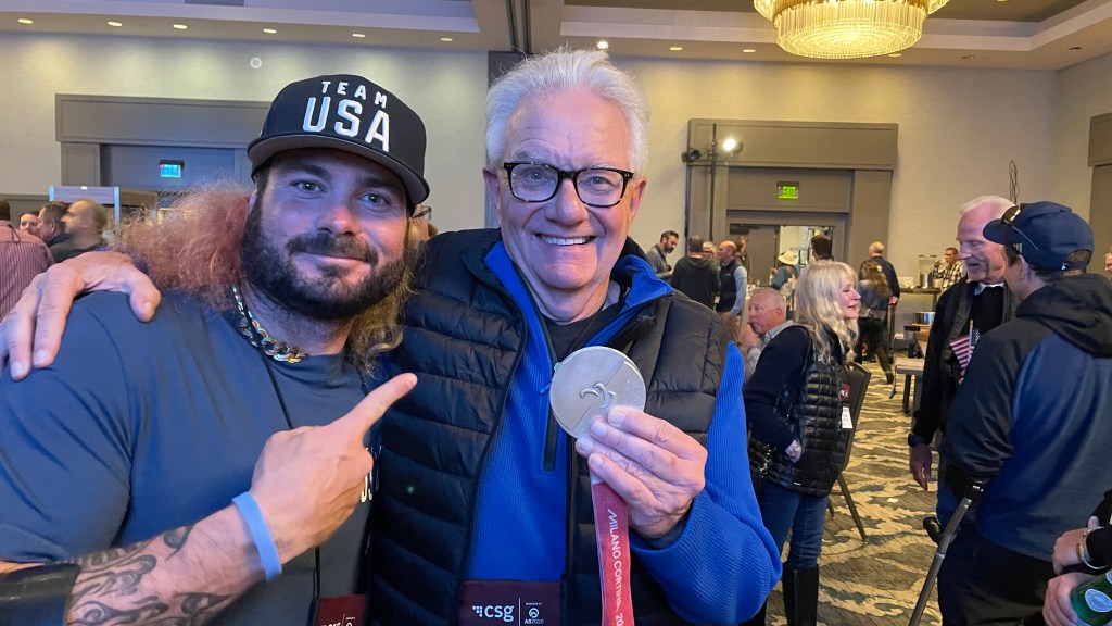 And then there is Patrick Halgren, a silver medalist in Cortina. He looked at the patchy conditions in Vail and decided to hike up the ski hill. Patrick has one leg, and Vail is steep, but he hiked up anyway and skied down.